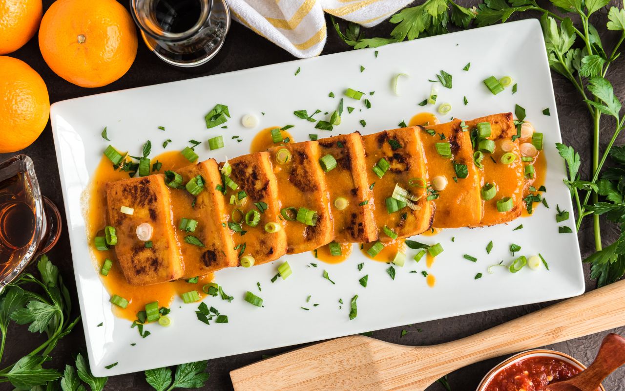Bold and zesty, this Chili and Citrus-Rubbed Tofu is a game-changer for weekday, plant-based meals. A vibrant marinade of fresh orange juice and chili paste infuses the organic tofu with the perfect balance of heat and brightness. A quick sear locks in the flavors, while a sprinkle of fresh cilantro and green onion adds a crisp, aromatic finish. This simple tofu recipe is proof that effortless cooking can still be exciting!