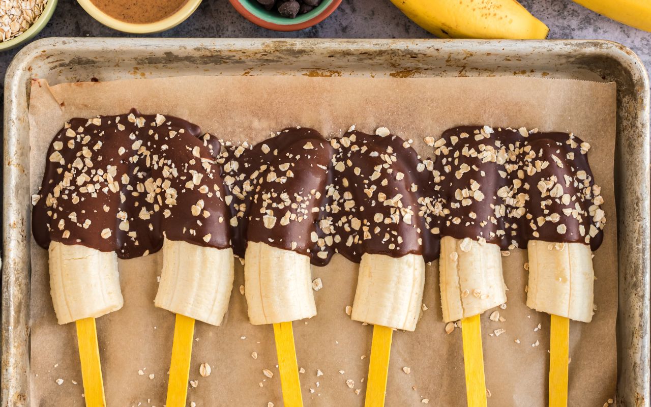 Frozen bananas get a creamy, nutty upgrade in these Chocolate Almond Butter Banana Popsicles! Each banana is dipped in smooth almond butter, coated in melted dark chocolate, and then receives a final sprinkle of crunchy rolled oats. Once frozen, these popsicles become the perfect creamy, crunchy, and chocolatey snack. Simple, satisfying, and made with just four real ingredients, this decadent treat proves that less is more!